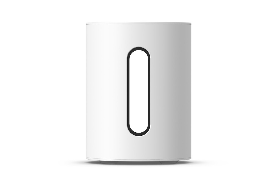 Sonos Sub Mini bygger på Sonos ikoniska design med hål i mitten som du kanske har sett på Sonos Sub (Gen 3). Den är bestyckad med två kraftfulla 6-tums baselement som är monterade i ett nydesignat cylindriskt kabinett med fronterna vända mot varandra. Fördelen med den här principen är att vibrationerna från de två elementen tar ut varandra så att de inte fortplantas till kabinettet. Därför får du en väldigt ren bas utan ”kabinettljud”.